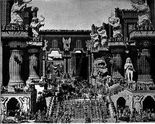 In the very early years of cinema DW Griffith more or less invented the Blockbuster Action movie with his films “Birth of a Nation” and “Intolerance”. The set designs for “Intolerance” clearly show John Martin’s influence. Compare the print of Martin’s painting “Belshazzar’s Feast with Griffith’s set design for a Babylonian scene in Intolerance.