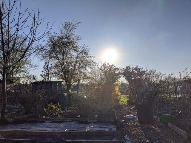 British Summer Time has not brought summer weather (possibly it has brought British summer weather). We had a north east wind which made it feel about -5° even though it was sunny. It didn’t stop us going to the allotment though. I think it counts as our daily excercise.