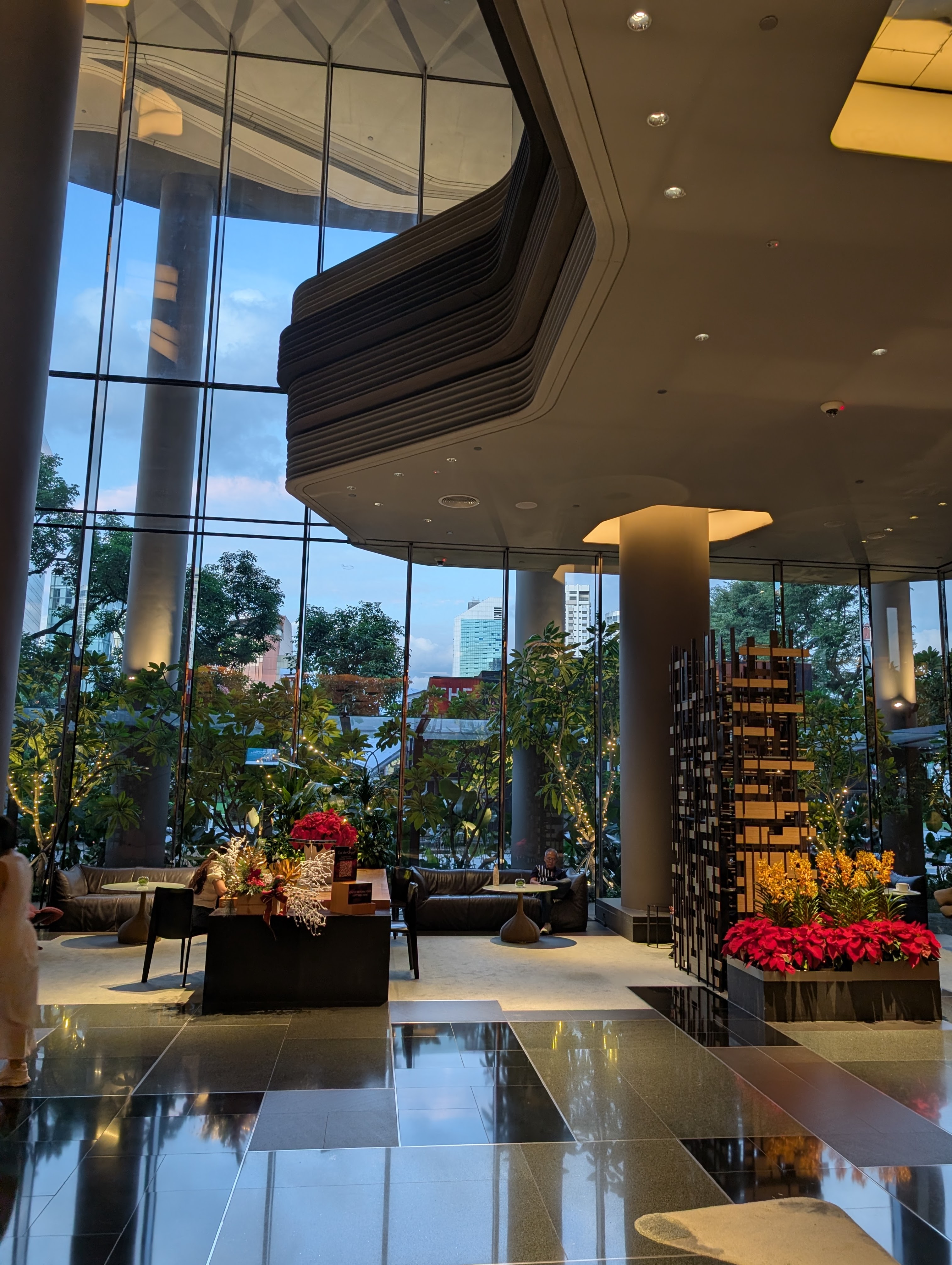 We decided on a visit to the National Gallery of Singapore . We left our luggage with the concierge. We decided to walk to the gallery. It was about a ten minute walk from the hotel. The walk took us down Bridge Street, across the river and past the Parliament Building.