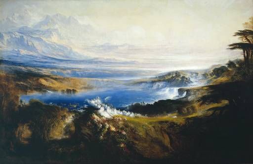 Martin has produced his vision of paradise. In the foreground wearing white we see the chosen. Behind them is a deep blue heavenly lake, filled by the waters of rushing rivers and waterfalls. Majestic snow-capped mountains surround the scene, and in the background a faint, almost ghostly New Jerusalem descends to Earth.