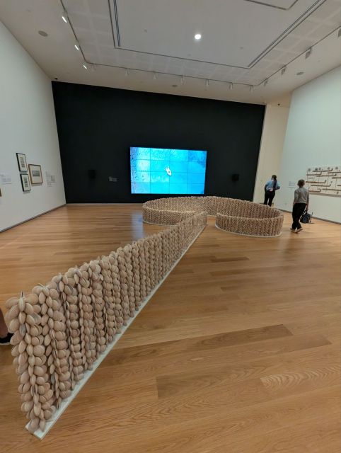 ‘We visited one of the exhibitions named “Glisten”. It was located in the Roof Garden created by Aotearoa/New Zealand artist Lisa Reihana. A link to where we come from.